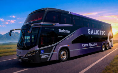 O Panorâmico DD NB1 entregue à empresa argentina é montado sobre o chassi Volvo B450R 6x2